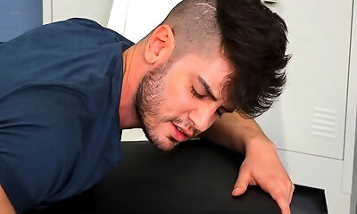 Locker room stud assfisted by rimming Bf